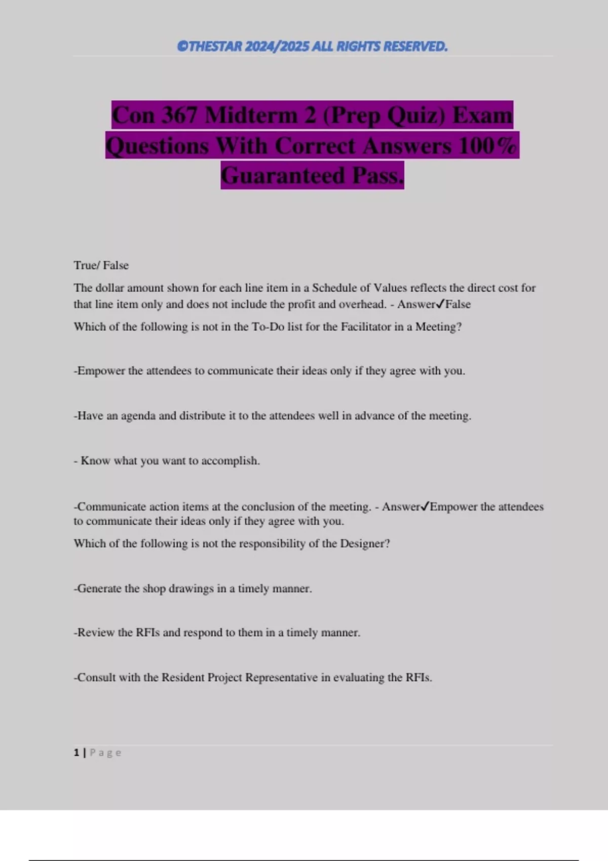 CON 367 Final Exam Questions With Correct Answers 100% Guaranteed Pass.