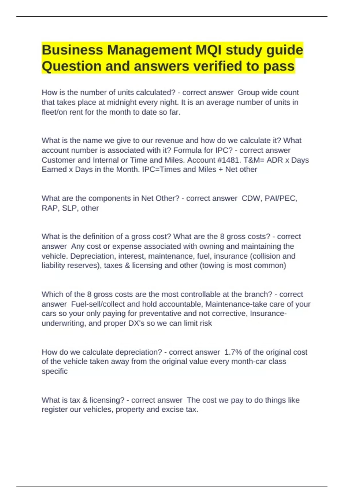 Exam (elaborations) Business Management MQI study guide Question and answers verified to pass Exam (elaborations) ENTERPRISE GROUP 56EE MQI : REMARKETING Question and answers correctly solved Exam (elaborations) Enterprise MQI - Vehicle Repair Exam (elaborations) Enterprise MQi - Risk Management Question and answers already passed Exam (ela