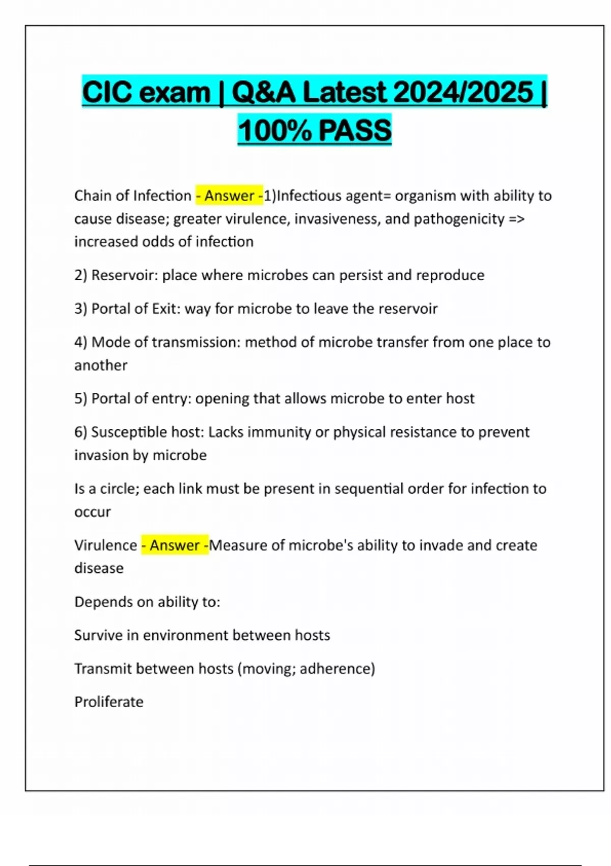 CIC BUNDLED EXAMS::::: Q&A LATEST 2024/2025