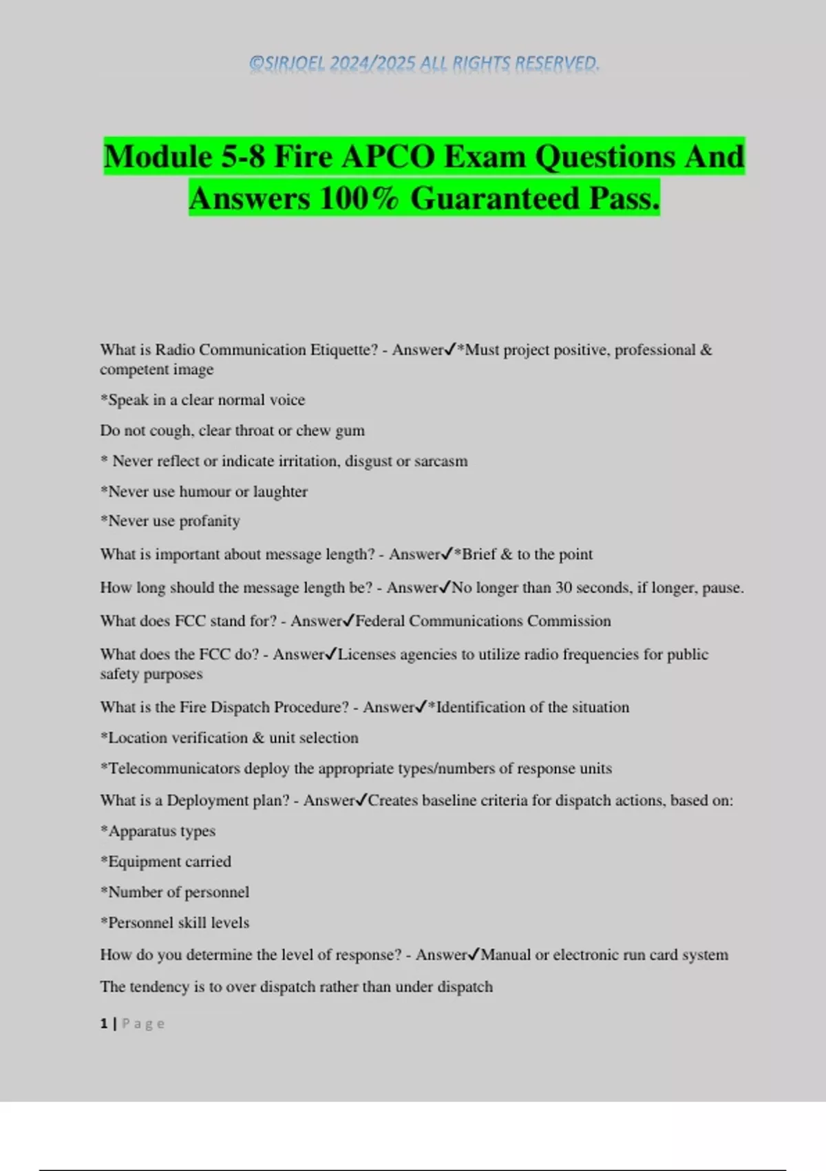 Module 5-8 Fire APCO Exam Questions And Answers 100% Guaranteed Pass.
