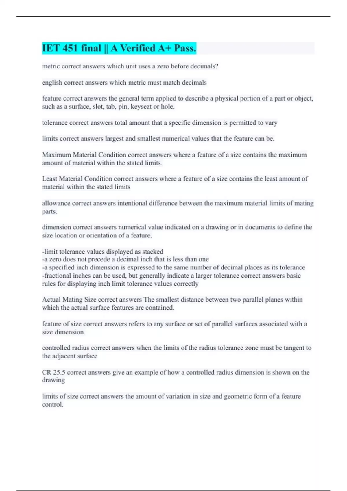 IET 451 Quiz Questions || All Answers Are Correct 100%. IET451 CHAPTER 8 || very Flawless. IET 451 || A+ Verified Solutions. IET 451 ch. 4-10 || A+ Graded Already. IET 451 CHAPTER 5 || with 100% Error-free Answers. IET 451 EXAM 1 Study || with 100% Errorless Solutions. IET 451 final || A Verified A+ Pass. IET 451 GD&T CH 1-5 || with 100% Verified S