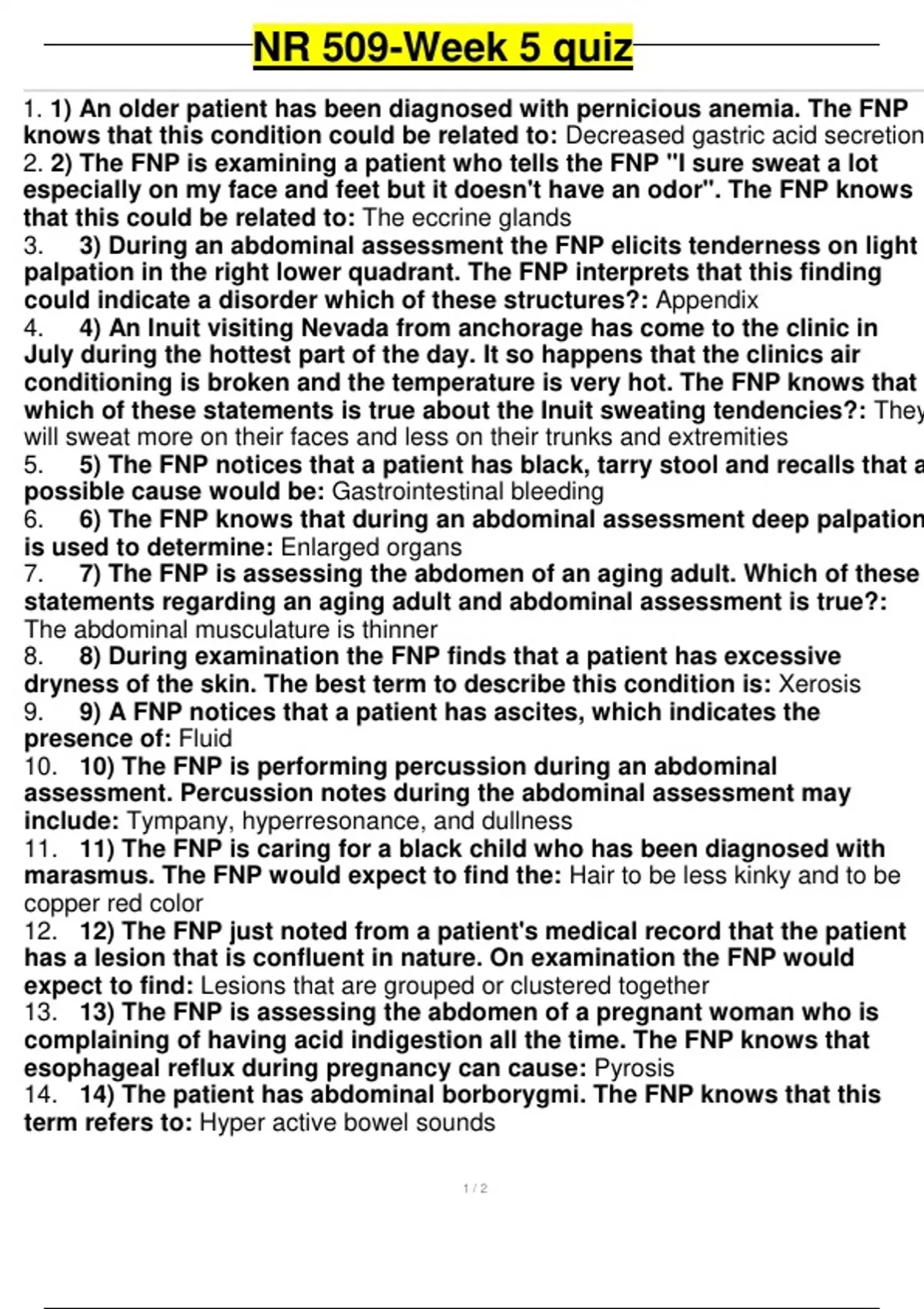 Exam (elaborations) NR509 Advanced Physical Assessment (NR509)