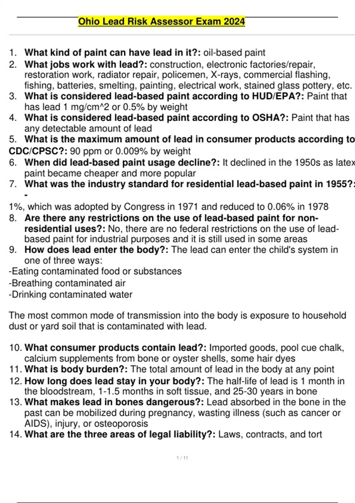 Ohio lead abatement contractor test questions and answers latest 2024