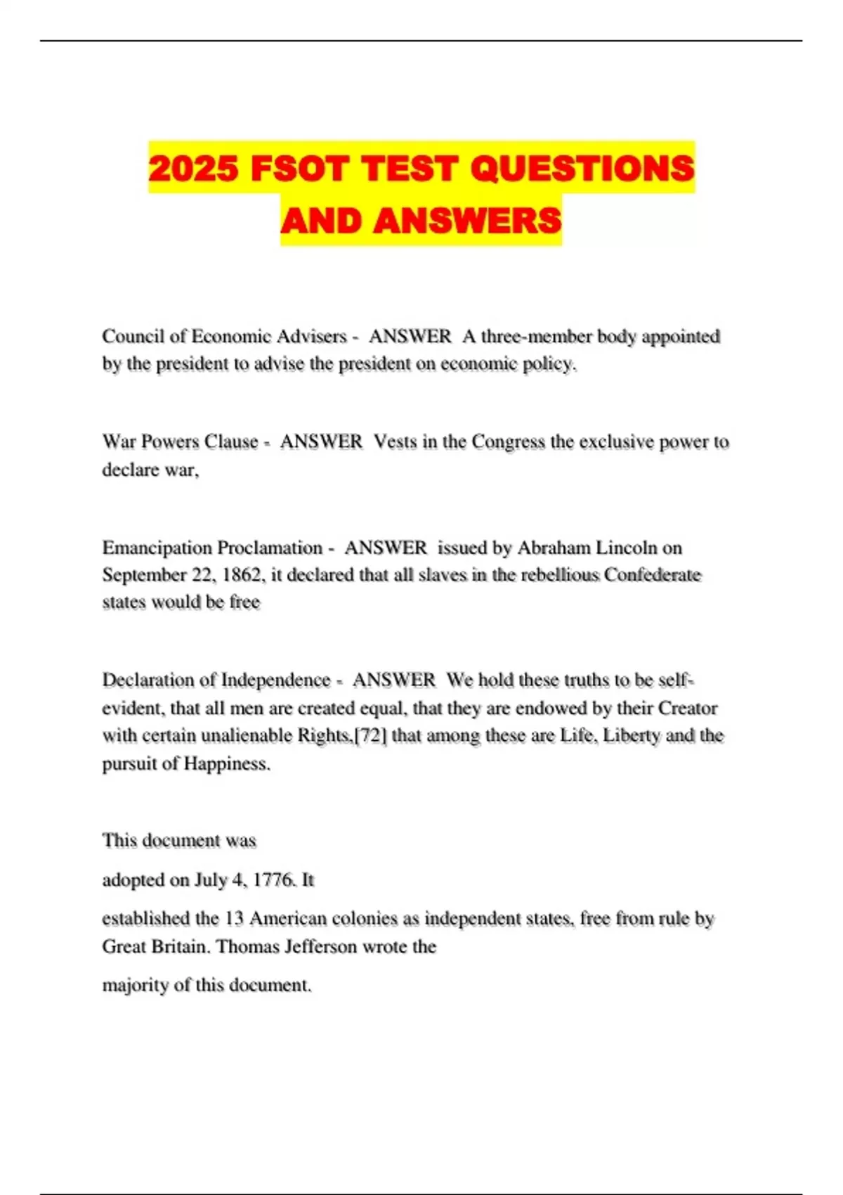 2025 FSOT TEST QUESTIONS AND ANSWERS