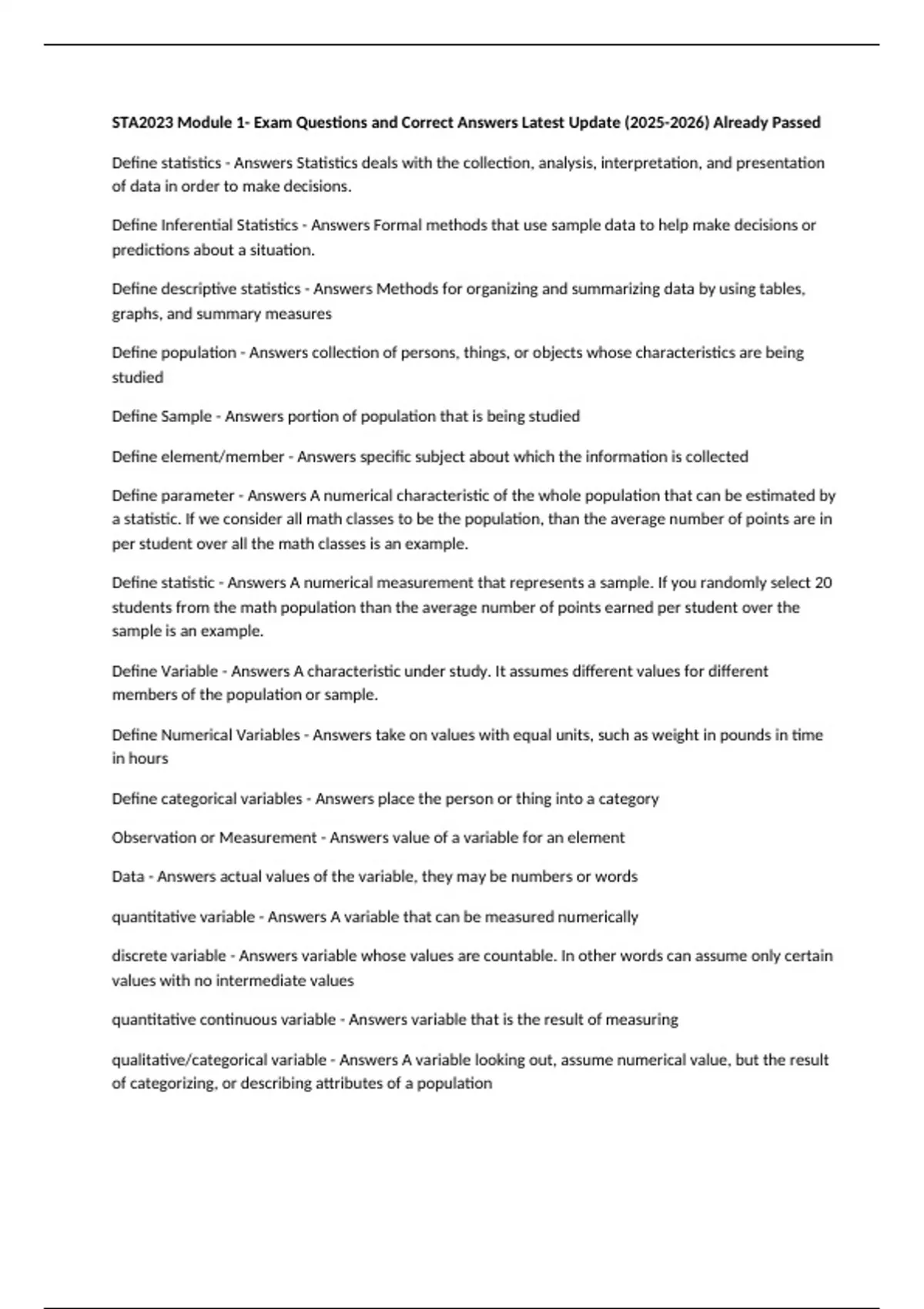 STA 2023 Module 1&2 Bundled Exam Questions Fully Solved Latest Update (2025/2026) Graded A+