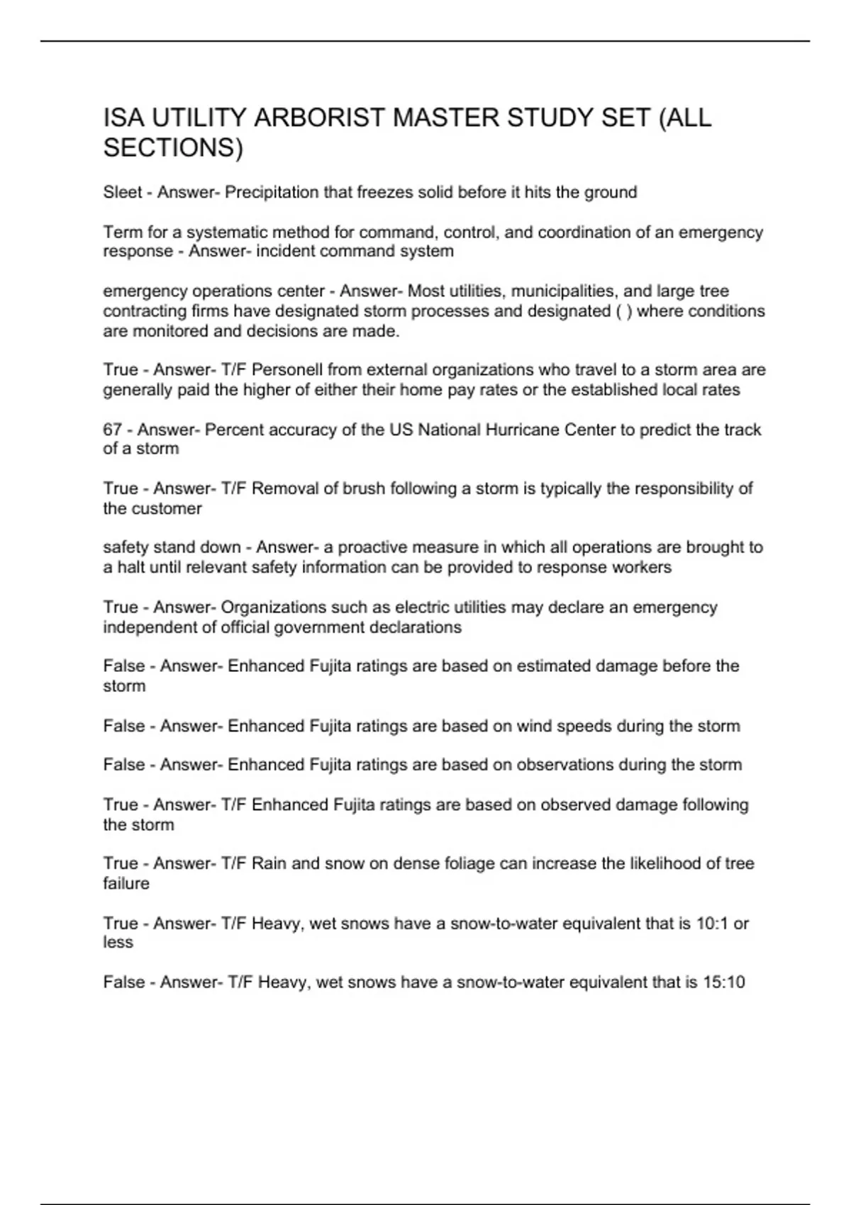 ISA Utility Arborist Master Study Set (All Sections) 2 Exam (elaborations) ISA UTILITY ARBORIST MASTER STUDY SET (ALL SECTIONS) 3 Exam (elaborations) ISA UTILITY SPECIALIST (CH. 2- PROGRAM & PERSONNEL MANAGEMENT) 4 Exam (elaborations) ISA UTILITY SPECIALIST (CH. 3- UTILITY PRUNING) 5 Exam (elaborations) ISA Utility Specialist (Chapters 1-7) 6