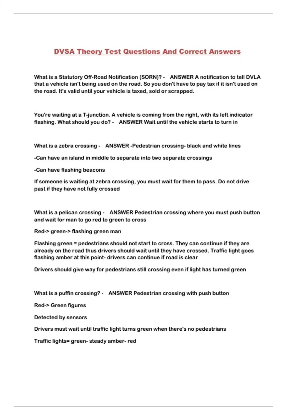 DVSA Theory Test Questions And Correct Answers