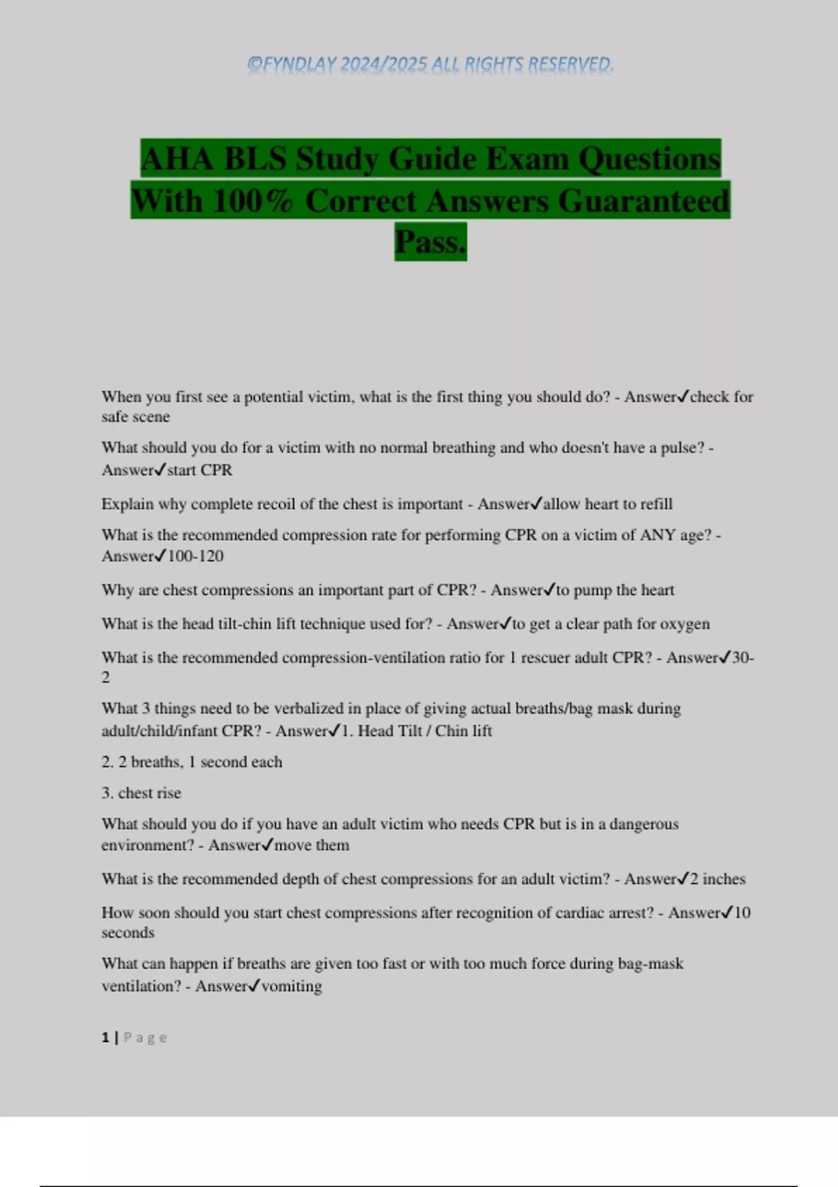 AHA BLS Study Guide Exam Questions With 100% Correct Answers Guaranteed Pass.
