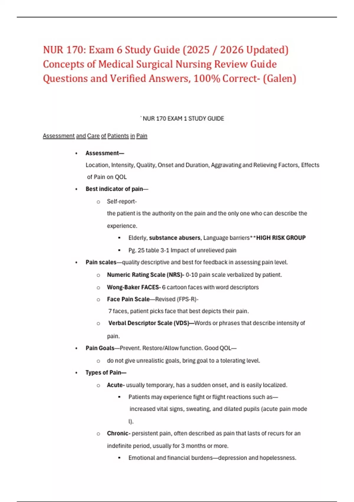 NUR 170 Exam 3 (Latest 2025 / 2026 Update): Concepts of Medical-Surgical Nursing Questions and Verified Answers, 100% Correct Grade A (Galen) NUR 170: Exam 2 (2025 / 2026) Concepts of Medical-Surgical Nursing Questions and Verified Answers, 100% Correct- (Galen) NUR 170: Exam 7 (2025 / 2026) Concepts of Medical-Surgical Nursing Review Guide Questi