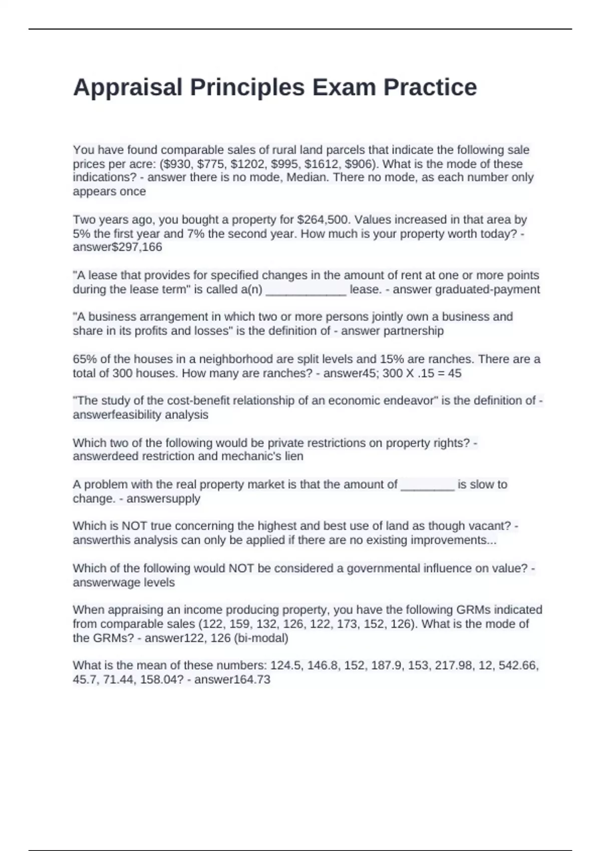 Exam (elaborations) USPAP McKissock Questions and Answers Graded A+ Exam (elaborations) Sales Comparison Approach McKissock Class Questions and Answers Accurate Exam (elaborations) McKissock-Residential Property Inspection for Appraisers Questions with Correct Answers Exam (elaborations) McKissock Learning - Basic Appraisal Principles Questi