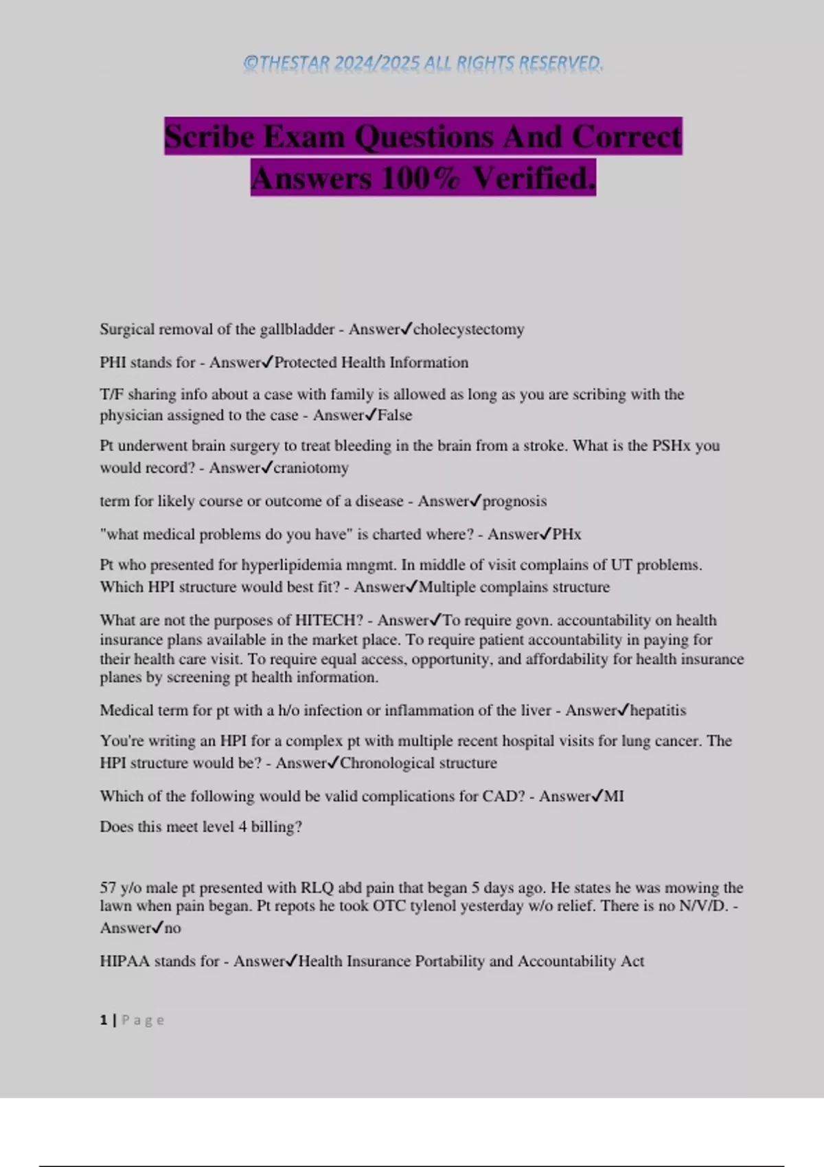 Scribe Final Exam Questions And Correct Answers 100% Verified.