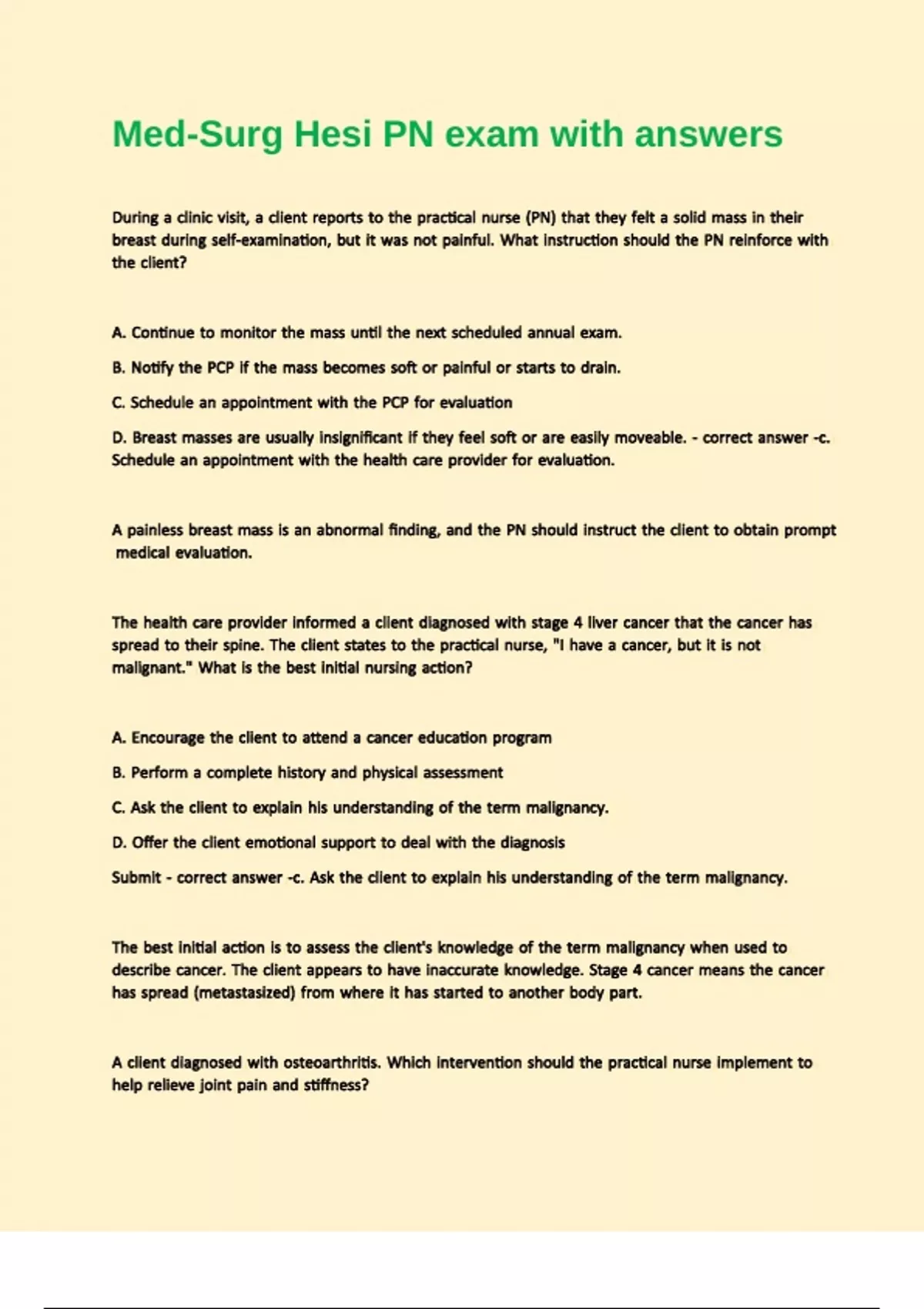 HESI PN BUNDLE Exam with verified solutions |100% CORRECT ANSWERS| A+ GRADED EXAMS
