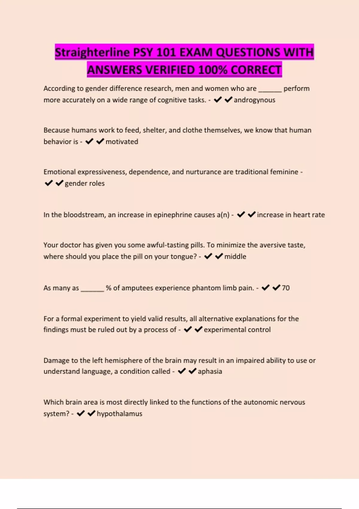Straighterline PSY 101 EXAMS BUNDLE| QUESTIONS WITH ANSWERS VERIFIED 100% CORRECT -CONTAINS ALL WHAT YOU NEED TO PASS WITH GRADE A+ -ALL QUESTIONS UPDATED TO THE LATEST UPDATE