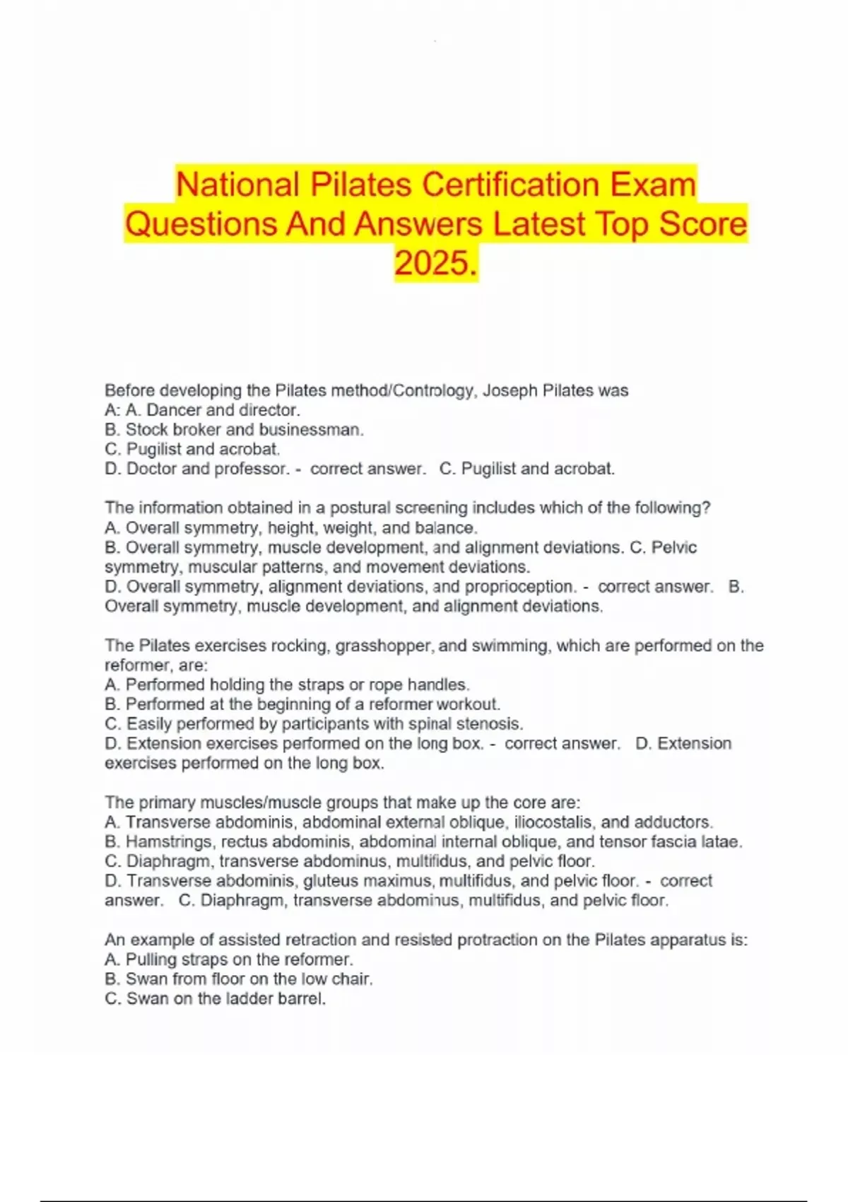 NPCE Certification Exam Study Guide Questions And Answers 100% Guaranteed Success.NPCE (National Pilates Certification Exam) Questions And Answers 100% Verified.National Pilates Certification Exam Questions And Answers Latest Top Score 2025.National Pilates Certification Exam Questions And Answers 100% Guaranteed Success.