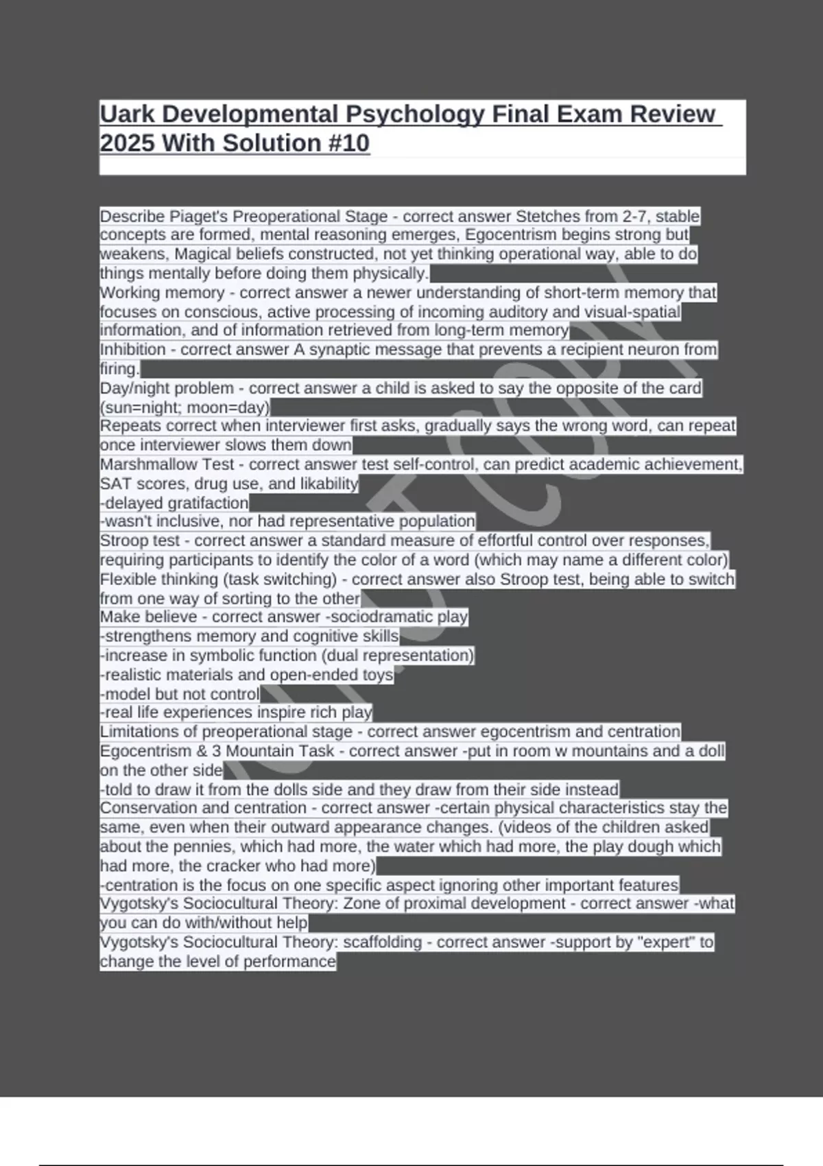 PYC4805 DEVELOPMENT PSYCOLOGY EXAM PACK 2024/2025 FULLY SOLVED AND VERIFIED FOR STUDY AND REVISION.GOOD LUCK