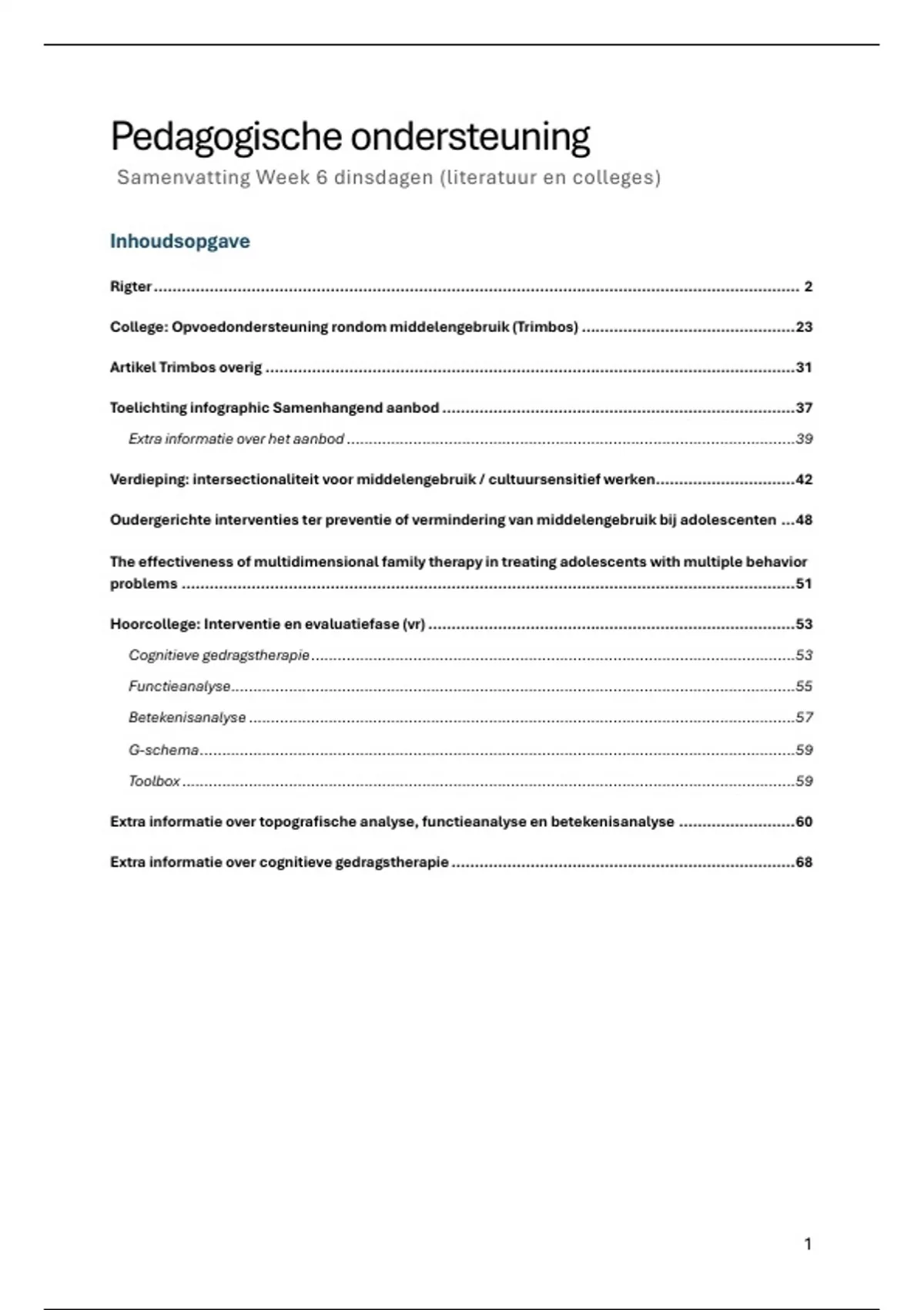 De samenvattingen van de dinsdagenen vrijdagen van week 6-8 van het vak pedagogische ondersteuning