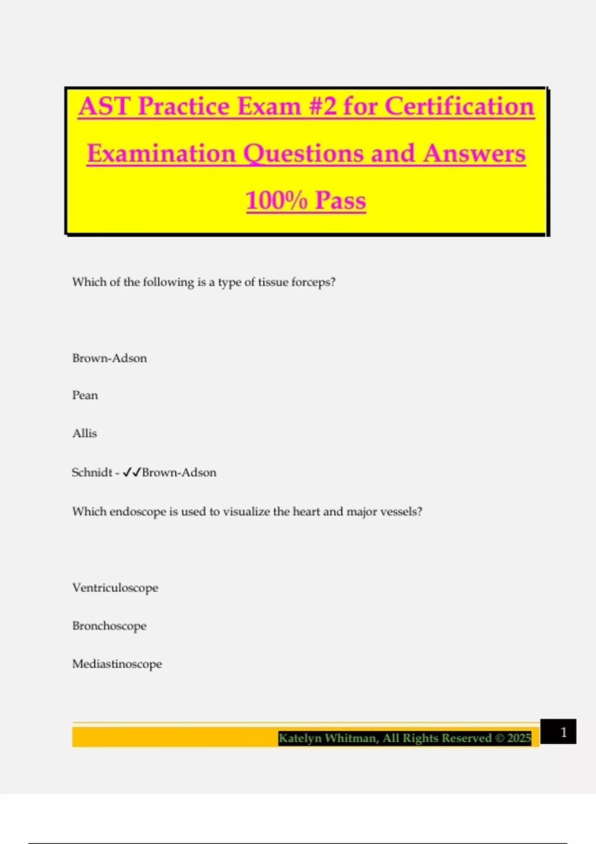 AST Practice Exam #2 for Certification Examination Questions and Answers 100% Pass