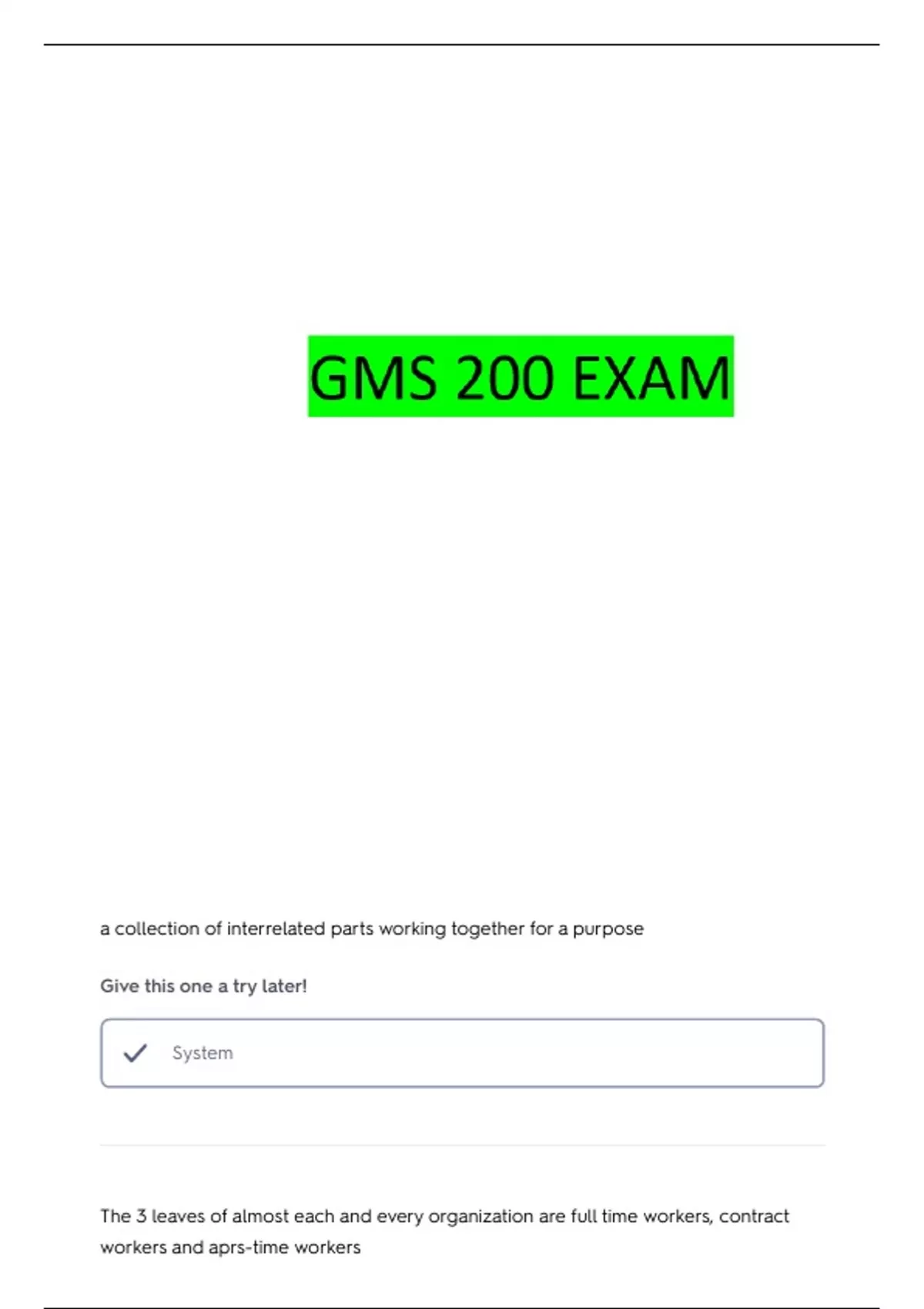 GMS 200 PACKAGE DEAL EXAMS ALL WITH COMPLETE ANSWERS