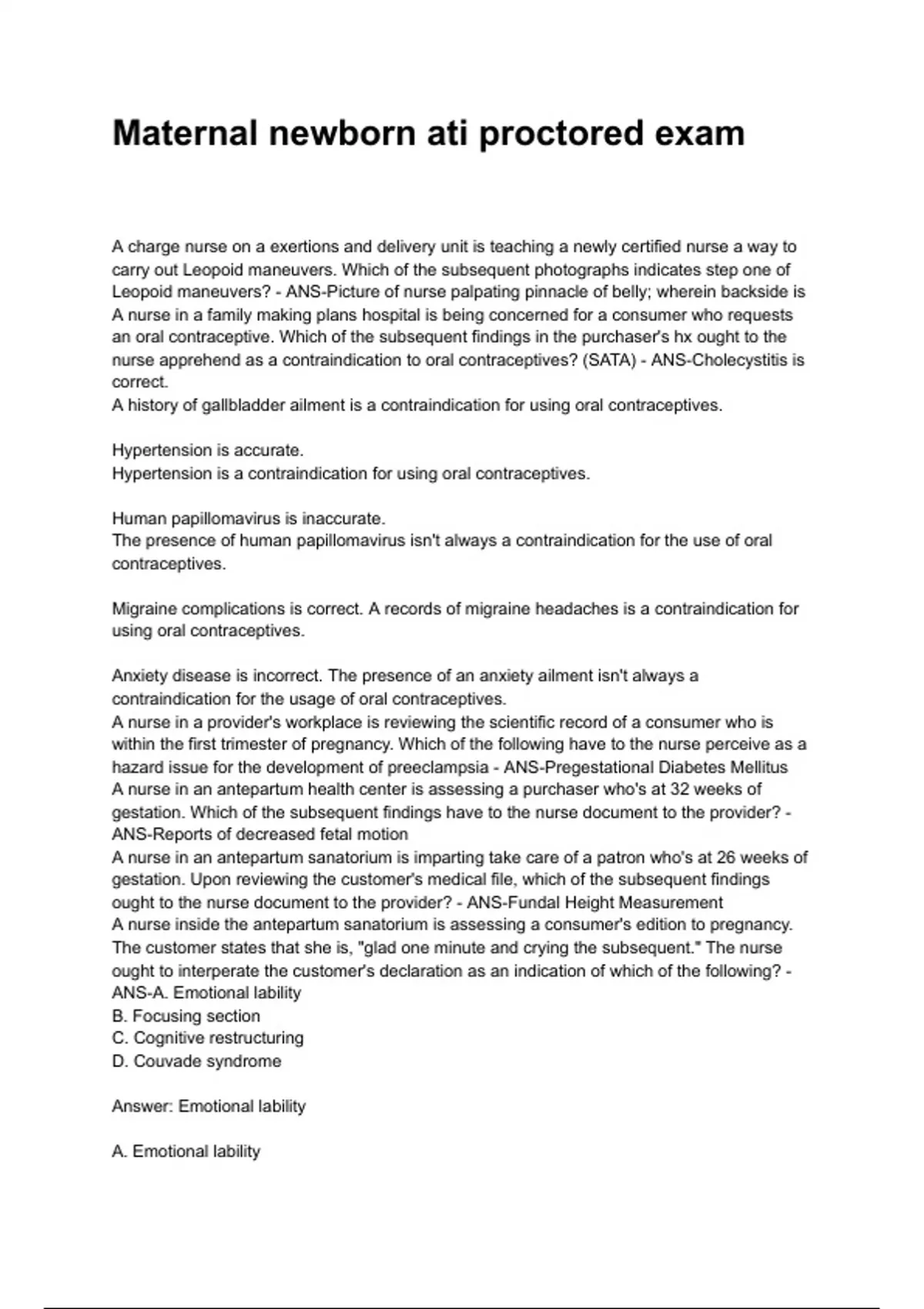ATI Maternal Newborn Proctored Exam NEWEST 2025/2026 ACTUAL EXAM COMPLETE QUESTIONS AND CORRECT DETAILED ANSWERS (VERIFIED ANSWERS) |ALREADY GRADED A+||BRAND NEW!! (ALL BUNDLED HERE!!!)