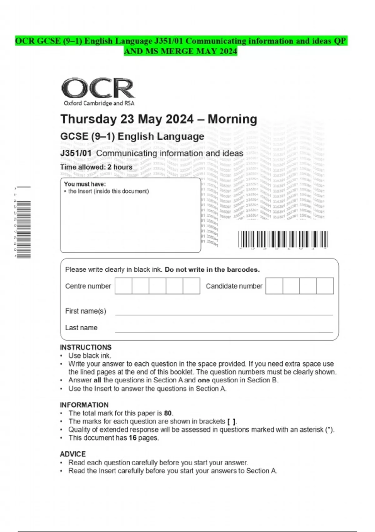 OCR GCSE English QP AND MS MERGED 2024