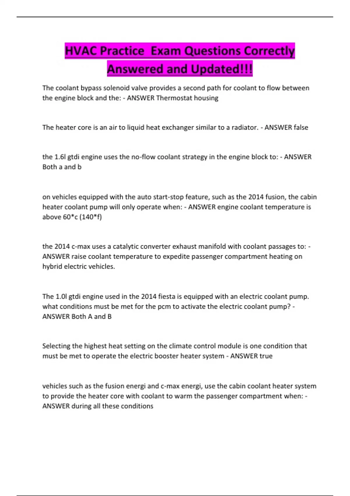 HVAC Practice Exam Questions Correctly Answered and Updated!