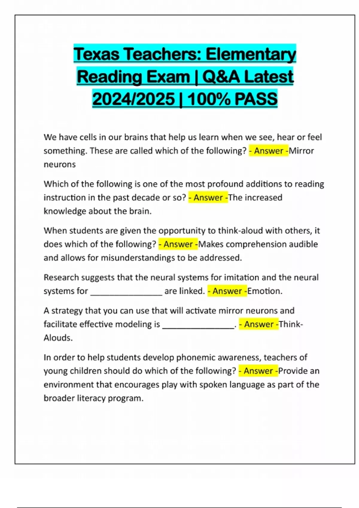 BUNDLE FOR TEXAS TEACHERS ASSESSMENT EXAMS | QUESTIONS AND CORRECT ANSWERS | LATEST UPDATE 2024/2025