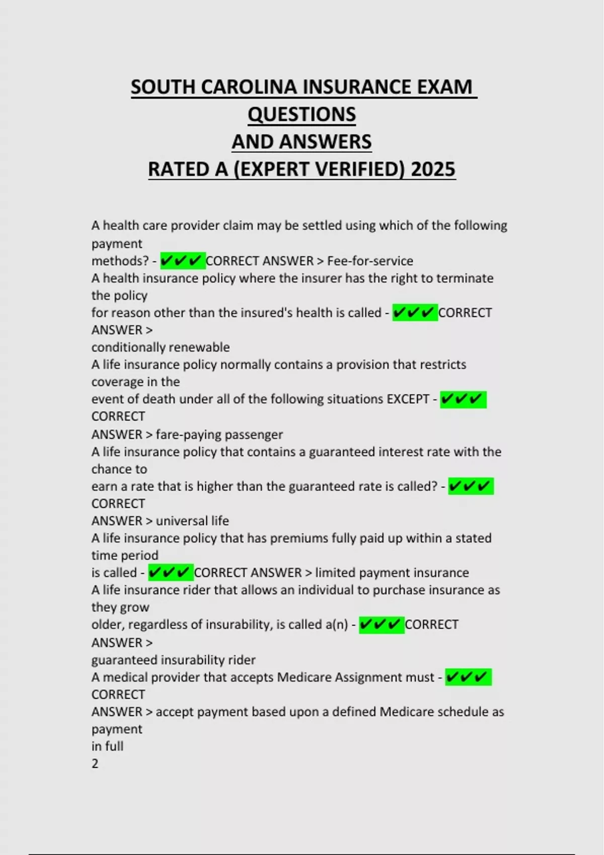 XCEL LIFE INSURANCE EXAM REAL EXAM QUESTIONS AND CORRECT DETAILED ANSWERS LATEST UPDATES 2025|ALREADY GRADED A+ WASHINGTON LIFE HEALTH AND LIFE INSURANCE EXAM WITH 100% CORRECT ANSWERS ALREADY GRADED A IN 202 SOUTH CAROLINA INSURANCE EXAM QUESTIONS AND ANSWERS RATED A (EXPERT VERIFIED) 202 LIFE INSURANCE EXAM QUESTIONS WITH QUESTIONS AND VERIFIED