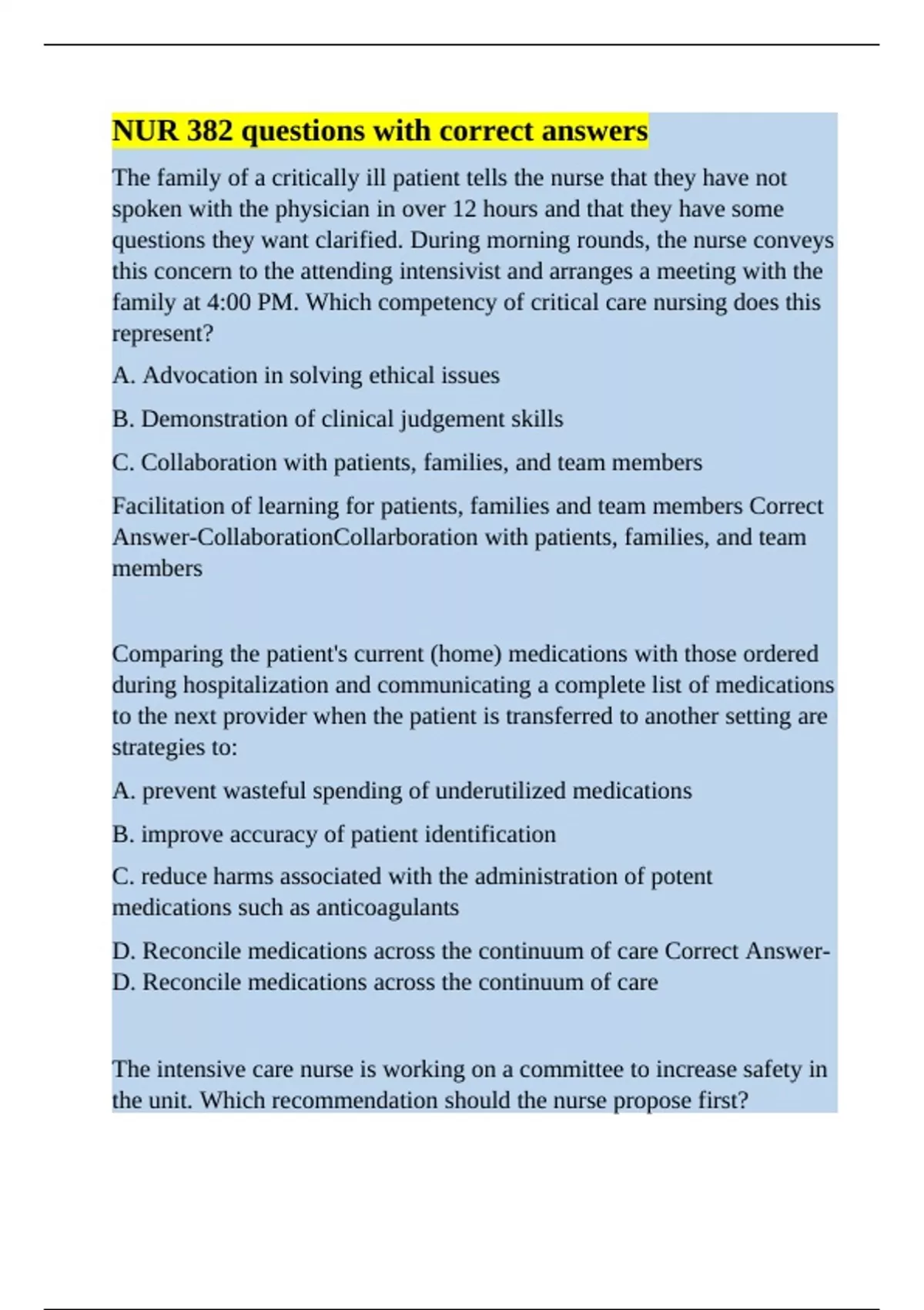 Health Assessment (NUR 382): material for test 1 questions with correct answers