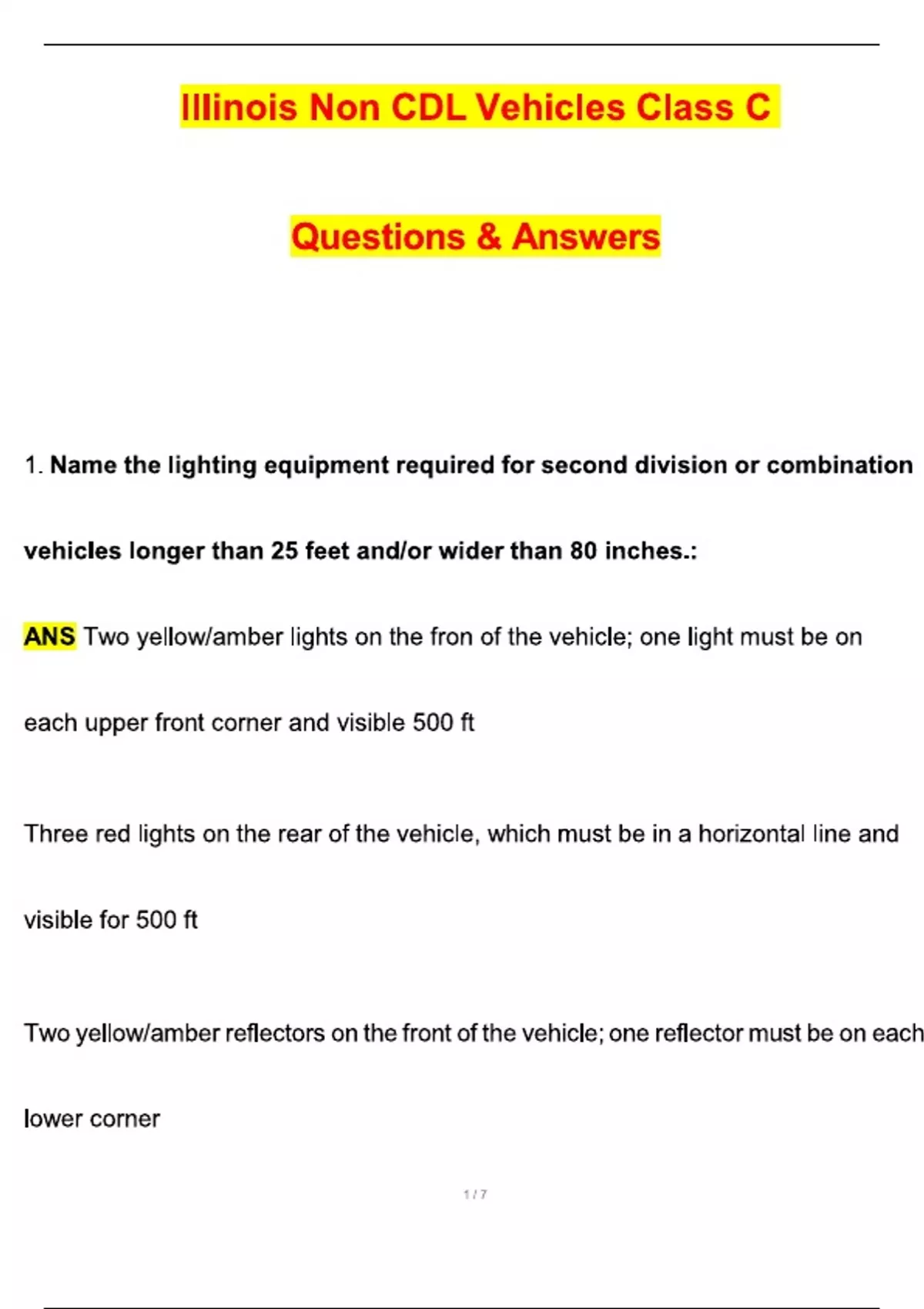 Illinois CDL & Non CDL BUNDLED EXAMS Illinois SOS Class C non-CDL Written Exam / Illinois Non CDL Class C Written Test / Illinois IDOT Class B Non CDL Permit Written Test (2025 / 2026 Update) Questions and Verified Answers | 100% Correct | Grade A