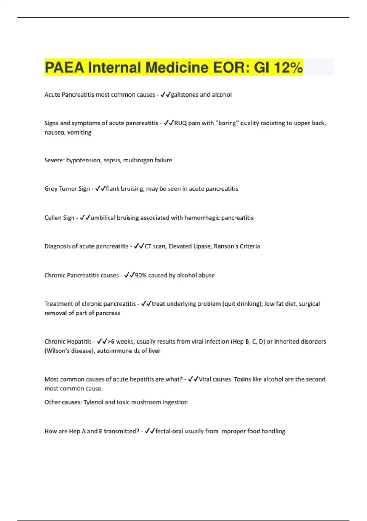 PAEA Internal Medicine EOR: GI 12%|Questions With 100% Correct Answers | Verified