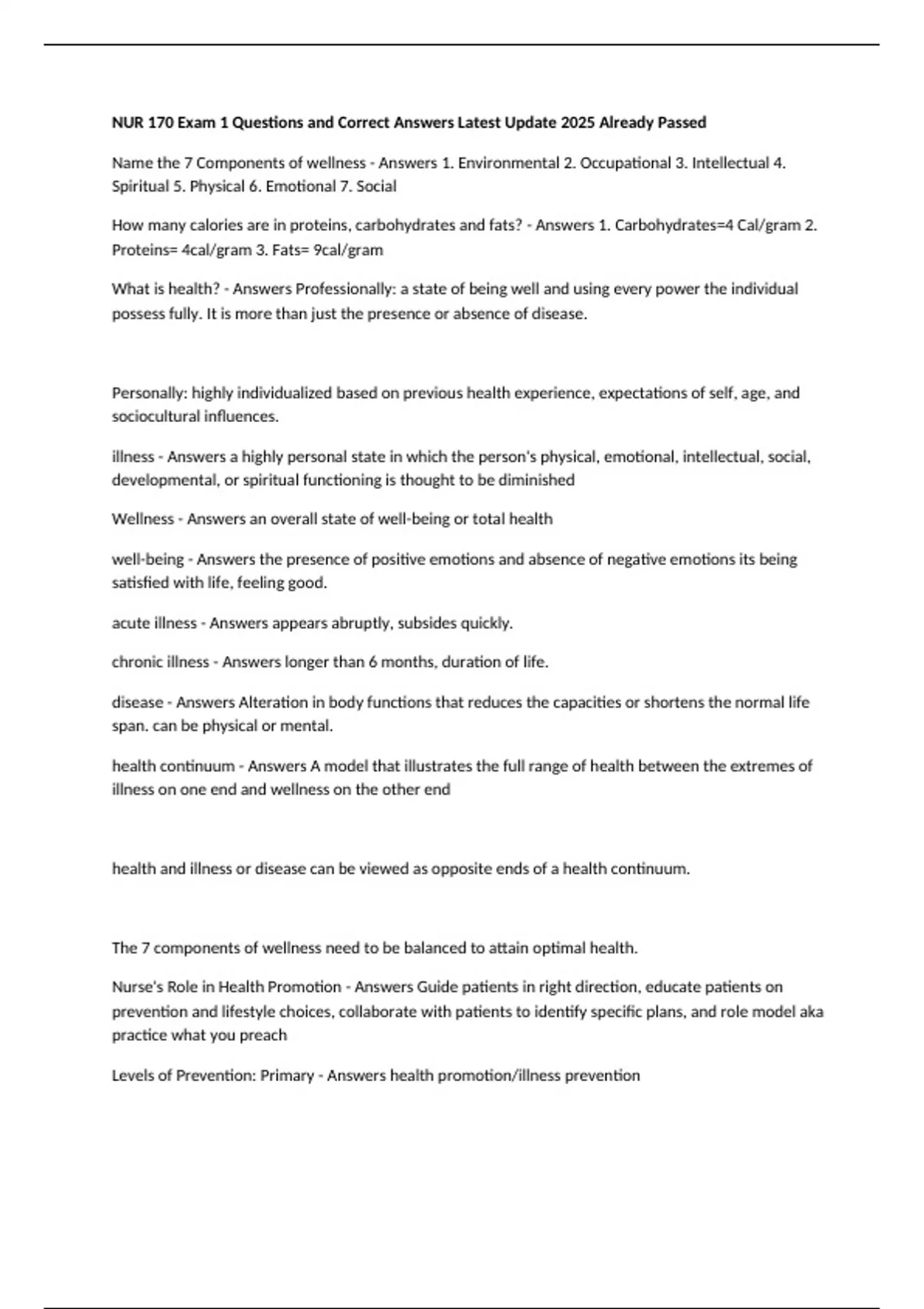 NUR 170 Exam 1-6 Bundled Questions Answered Correctly Latest Version 2025/2026