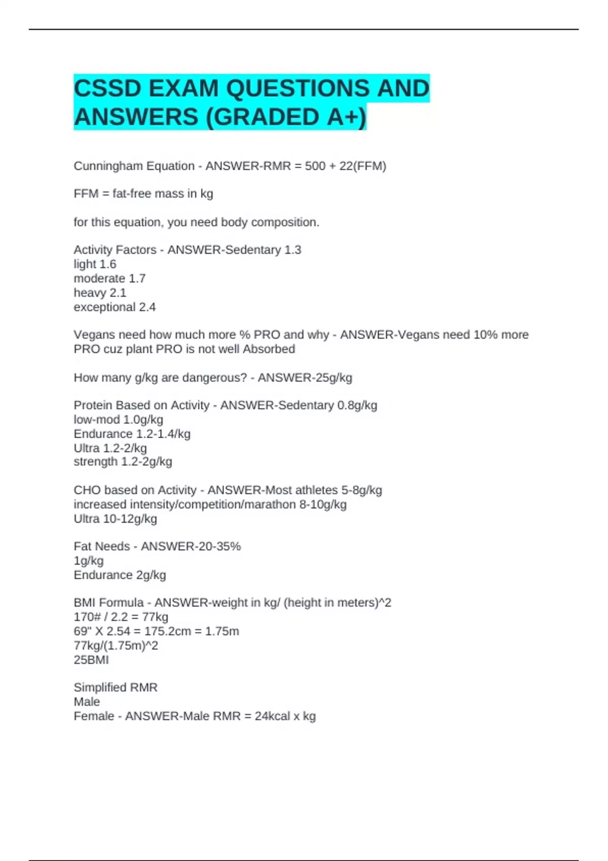 CSSD STUDY BUNDLE WITH COMPLETE SOLUTIONS