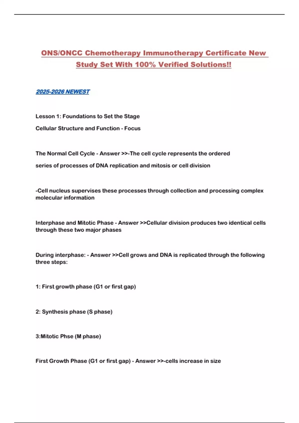ONS Chemotherapy Immunotherapy Certificate New Exam 100% Verified!!