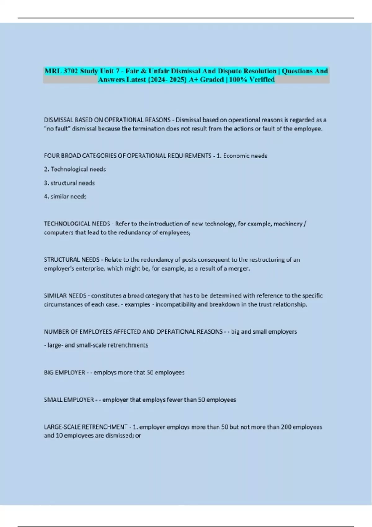 MRL3702 - EXAM MAY / JUNE 2024 | Questions And Answers 8 Exam (elaborations) MRL3702 - EXAM MAY/JUNE 2024 | Questions And Answers 9 Exam (elaborations) MRL3702 - Study Unit 11 - Strikes And Lock-Outs (Chapter 13) | Questions And Answers 10 Exam (elaborations) MRL3702 - Study Unit 6 Termination Of An Employment Contract: Definitions Of Dismissal And