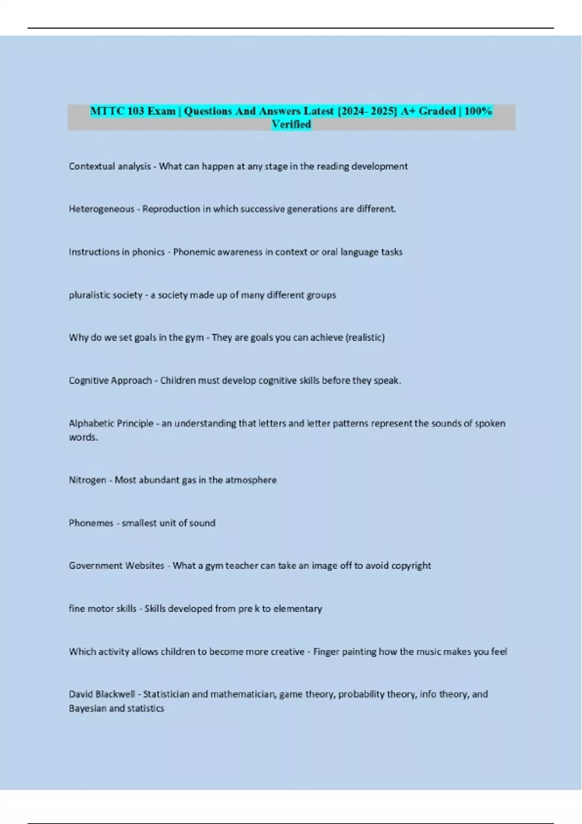 BUNDLE-::MTTC 103 EXAMS WITH COMPLETE SOLUTIONS|100% SOLVED