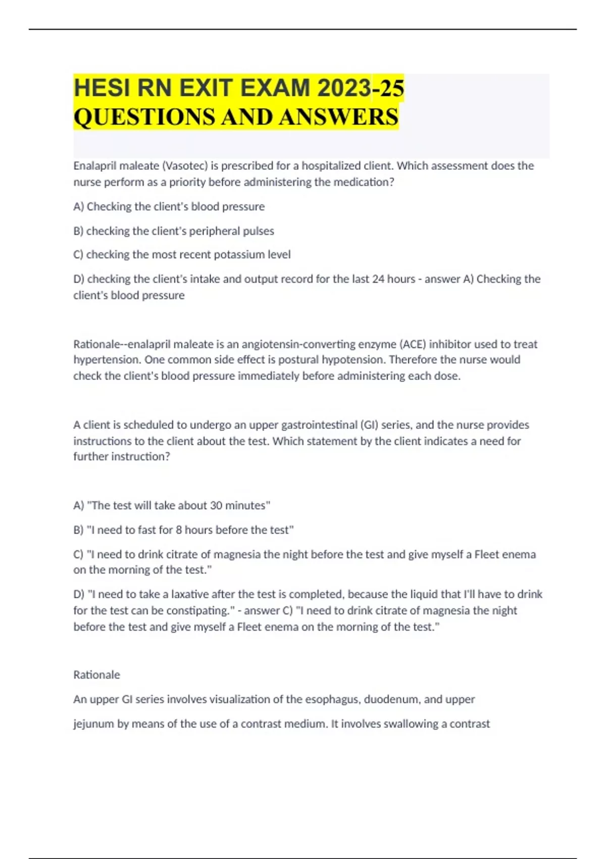 A COMPREHENSIVE COMPILATION BUNDLE FOR HESI RN EXIT EXAMS
