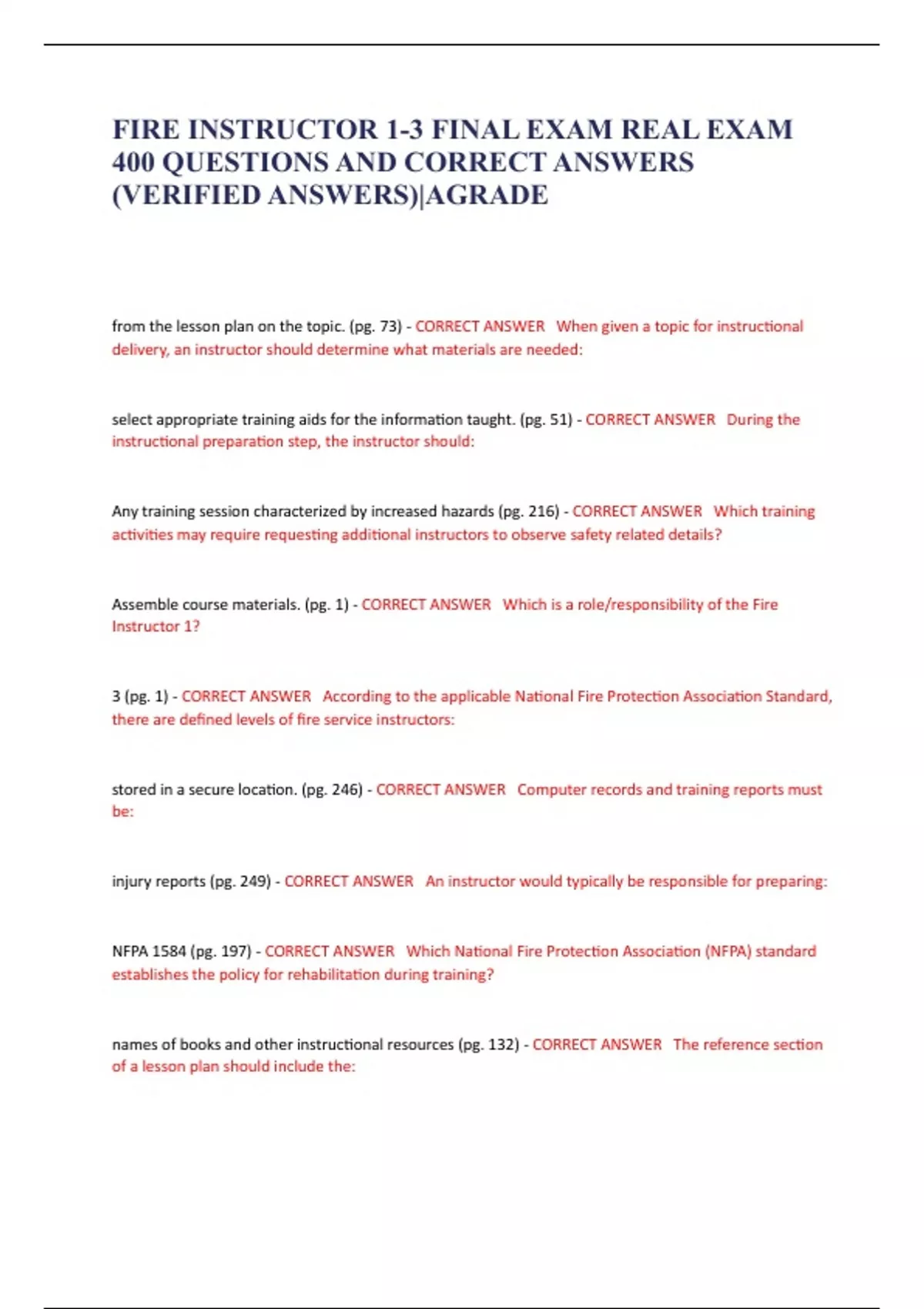 1 Exam (elaborations) FIRE INSPECTOR STUDY GUIDE 1 Final Exam Study Questions with COMPLETE SOLUTIONS (LATEST 2024] 2 Exam (elaborations) FIRE INSPECTOR STUDY GUIDE 1 Final Exam Study Questions with COMPLETE SOLUTIONS (LATEST 2024] 3 Exam (elaborations) Fire Inspector 1 Study Guide Final Exam Study Questions with COMPLETE SOLUTIONS (LATEST 2024]