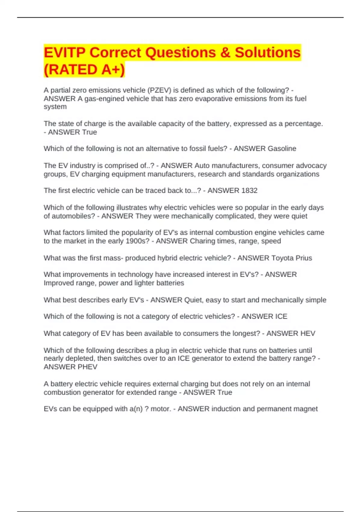 EVITP Correct Questions & Solutions (RATED A+)COMPLETE EXAM BUNDLE