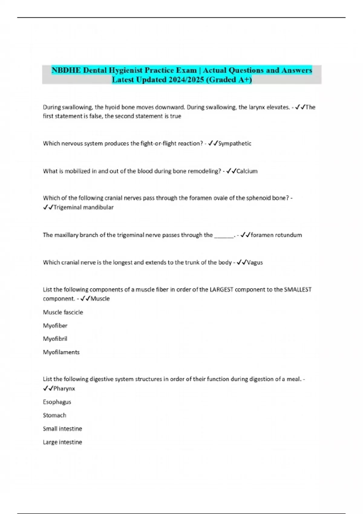 NBDHE mock exam Final Exam | Actual Questions and Answers 13 Exam (elaborations) NBDHE Mock Exam Review | Actual Questions and Answers 14 Exam (elaborations) NBDHE practice exam | Actual Questions and Answers 15 Exam (elaborations) NBDHE SHORT Final Exam | Actual Questions and Answers 16 Exam (elaborations) NBDHE practice Exam | Actual Questions an