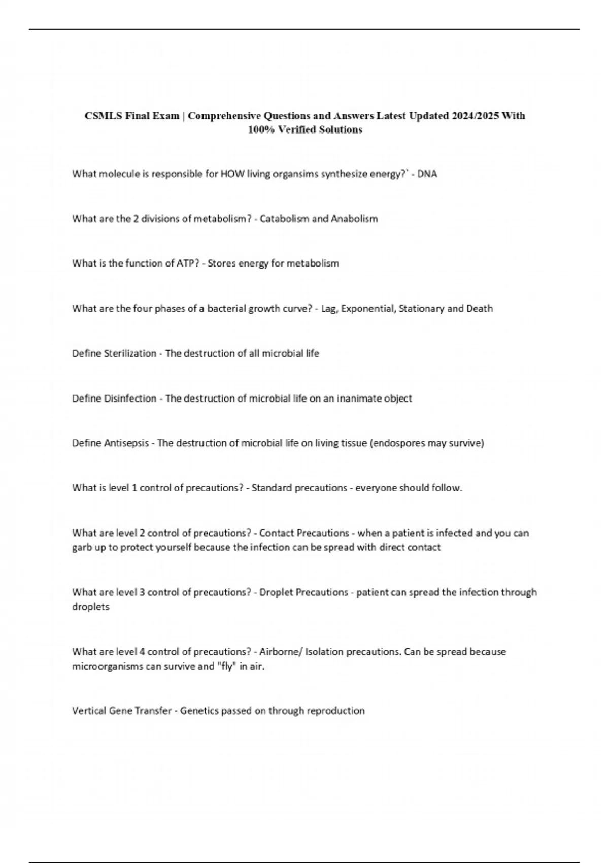 CSMLS MLA Study Set | Comprehensive Questions and Answers 5 CSMLS Exam (elaborations) CSMLS MOCK EXAM | Comprehensive Questions and Answers 6 Exam (elaborations) Practice Exam | Comprehensive Questions and Answers 7 Exam (elaborations) CSMLS EXAM PREP | Comprehensive Questions and Answers 8 Exam (elaborations) CSMLS EXAM QUESTIONS | Comprehensive Q