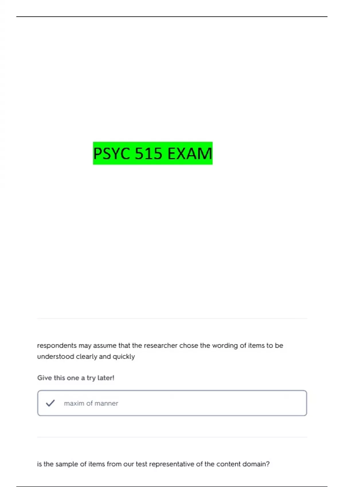 PSYC 515 EXAMS ALL WITH CORRECT ANSWERS