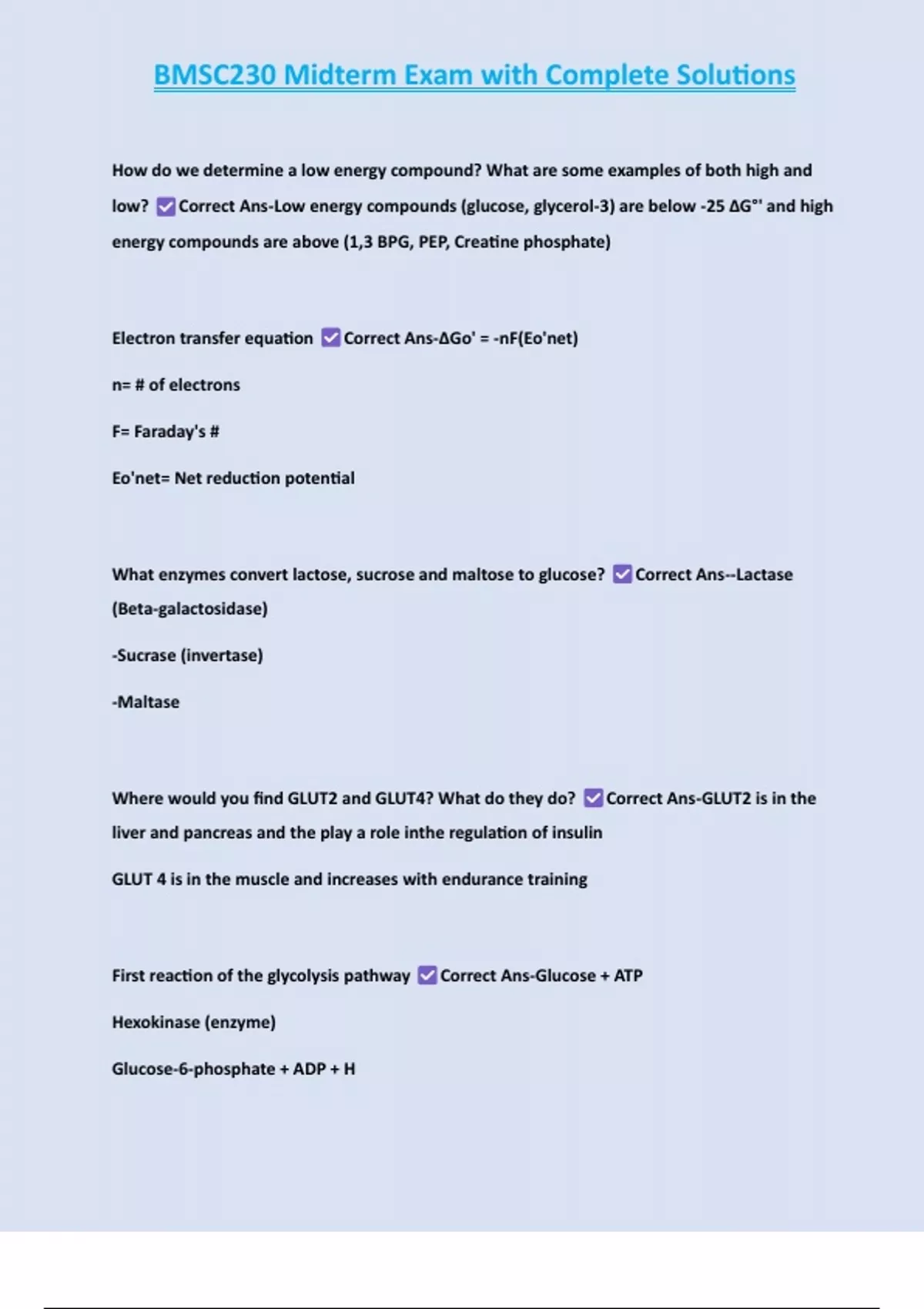 BMSC 207 Midterm Exam Study Guide | Questions & Answers 8 Exam (elaborations) BMSC 207 Module 1 | Questions & Answers (100 %Score) 9 Exam (elaborations) BMSC 207 Module 10 | Questions & Answers 10 Exam (elaborations) BMSC 207 Module 11 | Questions & Answers 11 Exam (elaborations) BMSC 207 Module 12 | Questions & Answers 12 Exam (elaborations) BMSC