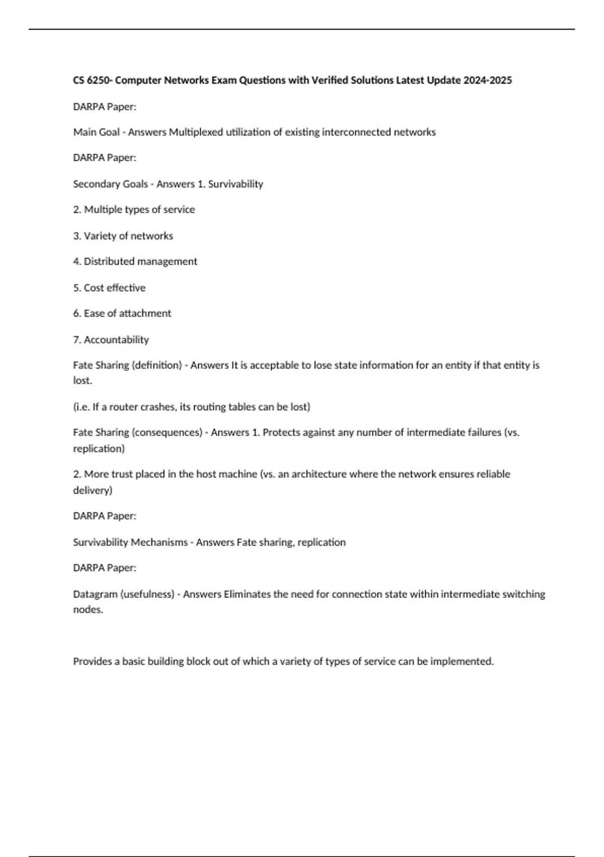 CS 6250 - Computer Networks Bundled Questions and Answers Latest Update 2025/2026