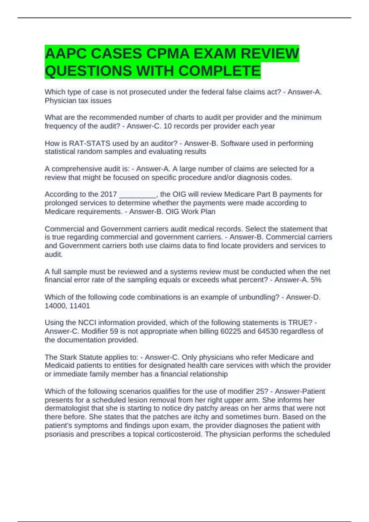 Exam (elaborations) CPMA CHAPTER #2 EXAM QUESTIONS WITH COMPLETE ANSWERS Exam (elaborations) CPMA- CHAPTER ONE EXAM QUESTIONS AND ANSWERS Exam (elaborations) CPMA EXAM CHAPTER #3 QUESTIONS WITH COMPLETE ANSWERS Exam (elaborations) CPMA EXAM CHAPTER #5 QUESTIONS WITH CORRECT ANSWERS Exam (elaborations) CPMA EXAM Q&A Exam (elaborations) CP