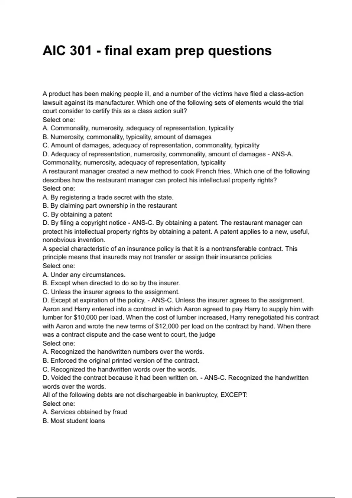 AIC 301 NEWEST 2025/2026 ACTUAL EXAM COMPLETE QUESTIONS AND CORRECT DETAILED ANSWERS (VERIFIED ANSWERS) |ALREADY GRADED A+||BRAND NEW!! (ALL BUNDLED HERE!!!)