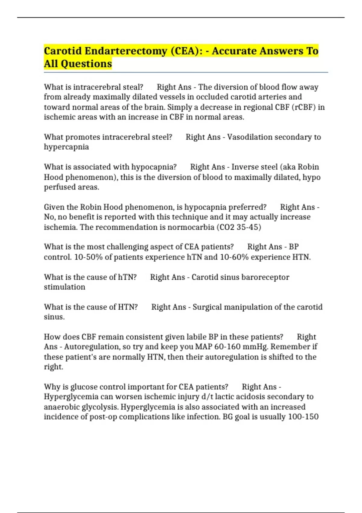 Carotid Endarterectomy (CEA): - Accurate Answers To All Questions
