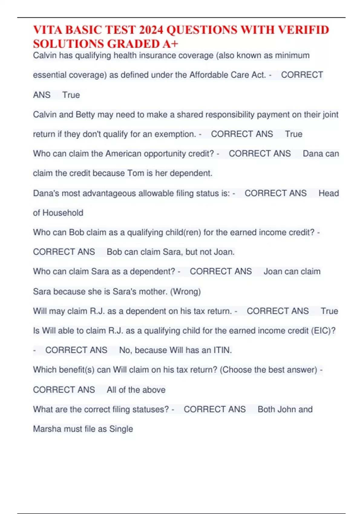 VITA CERTIFICATION EXAM 2025 LATEST UPDATE| 180 VERIFIED Q&As VITA HSA CERTIFICATE 2025 LATEST UPDATE| VERIFIED Q&As VITA BASIC TEST 2024 QUESTIONS WITH VERIFID SOLUTIONS GRADED A+ VITA BASIC EXAM 2024 QUESTIONS WITH VERIFID SOLUTIONS GRADED A+