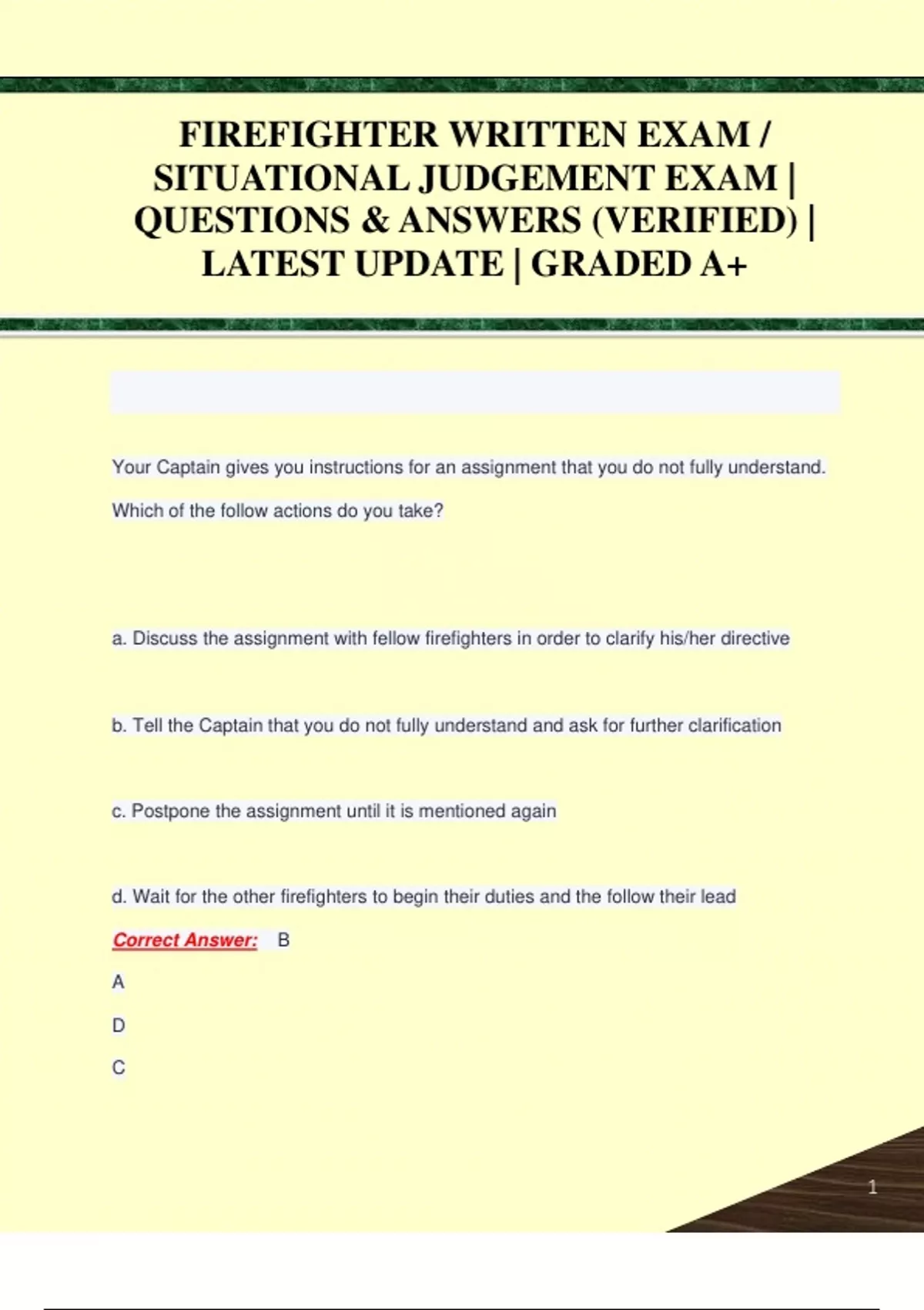 FIREFIGHTER WRITTEN EXAM / SITUATIONAL JUDGEMENT EXAM | QUESTIONS & ANSWERS (VERIFIED) | LATEST UPDATE | GRADED A+