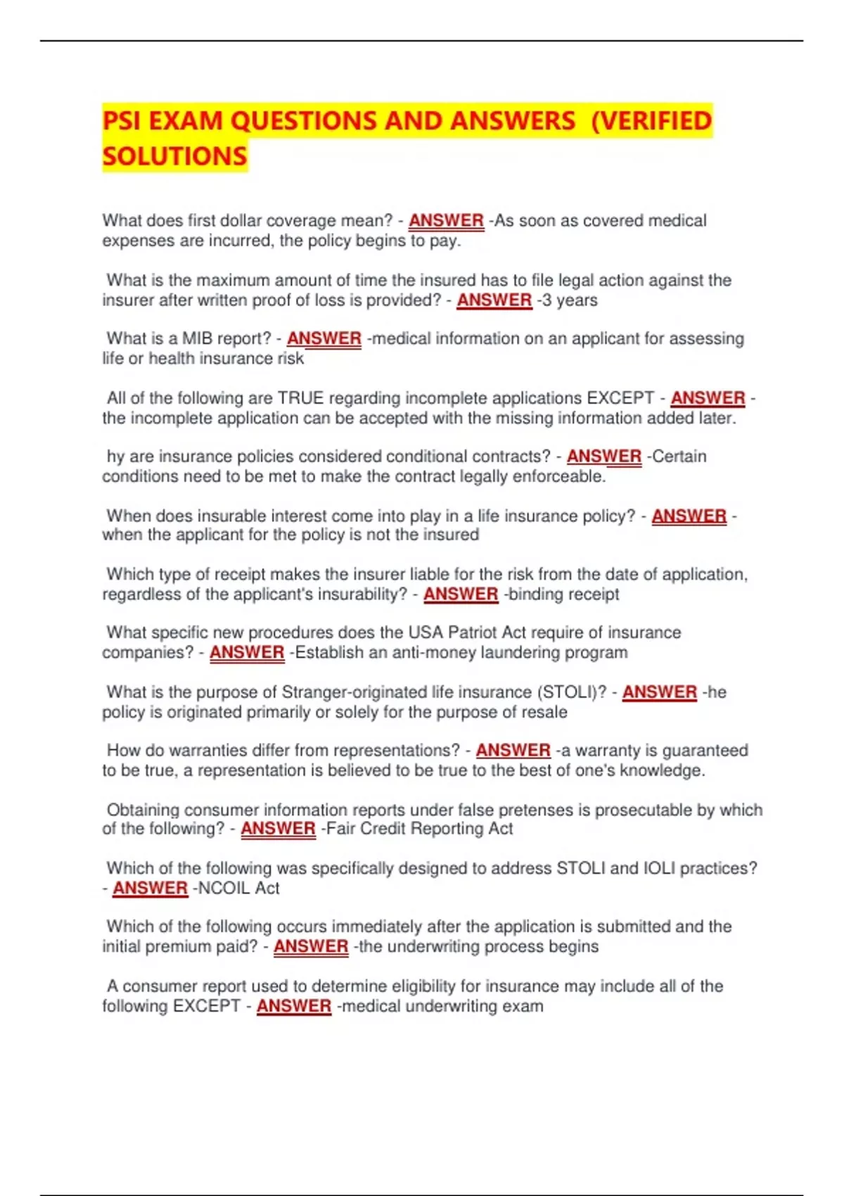 PSI EXAM QUESTIONS AND ANSWERS (VERIFIED SOLUTIONS