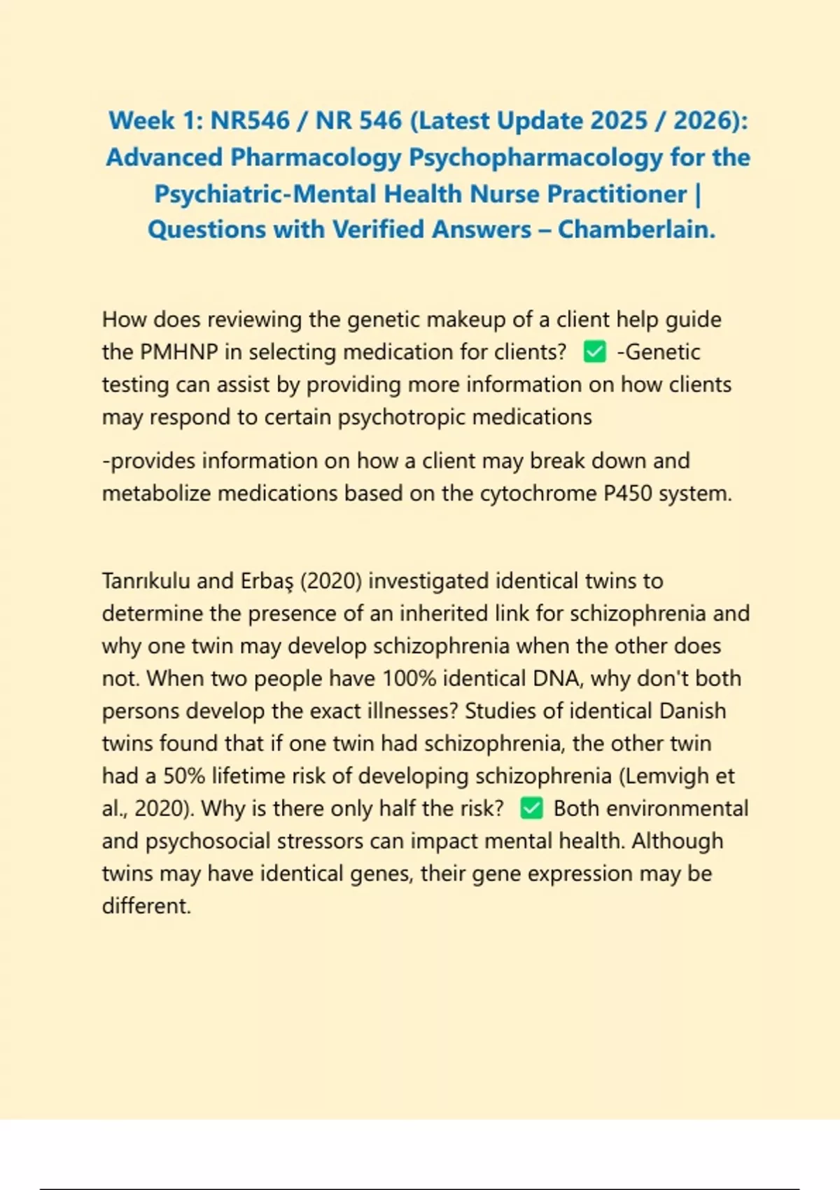 Weeks 1-8, Midterm & Final Exams: NR546 / NR 546 Quiz PACKAGE DEAL| BUNDLE contains the Latest Update 2025 / 2026 Advanced Pharmacology Psychopharmacology for the Psychiatric-Mental Health Nurse Practitioner| Test Your Knowledge Quizzes Weeks 1-8, midterm and Final with Verified Answers | 100% Correct- Chamberlain.